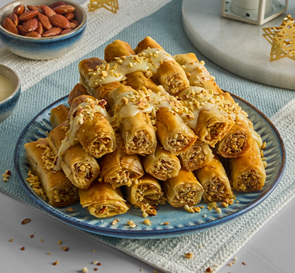 قطعي العجينة بحسب الرغبة، واتركي فجوة وسط البقلاوة ليكون قوامها هشاً وطعمها مقرمشاً.